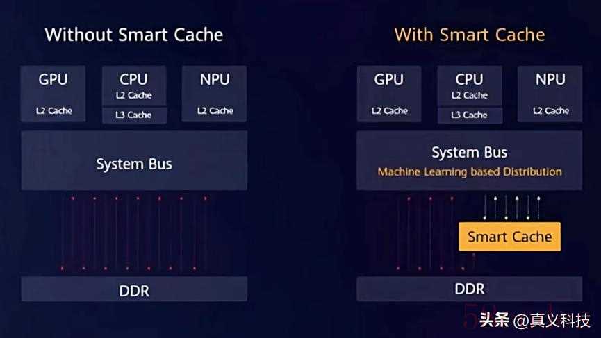 最终在2019年九月份麒麟990系列发布之前,华为已经遭受了两轮制裁并因此导致CPU架构和GPU架构的原封不动,但也正是此番遭遇迫使华为在架构优化方面,发挥了无尽潜力!原来这代新引入了4MB的系统缓存,结合全新的华为自研达芬奇架构NPU之智能调度,以及采用了“大规模低频率”设计的GPU,最终CPU、GPU的整体能效表现因此大幅受益!
