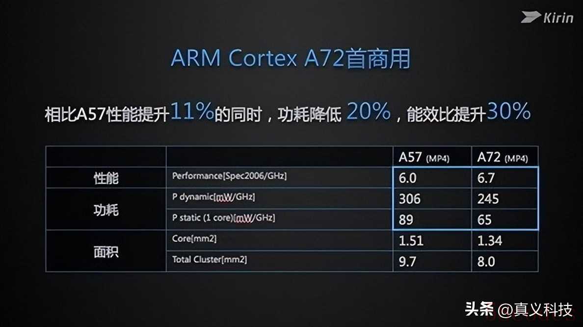 就算不跟28nm工艺比,其相较于“火龙810”所基于的台积电20nm制程工艺,也有非常夸张的40%的性能升幅和60%的同频功耗降幅!也就是说台积电的20nm工艺质量极为拉胯。刚好“火龙810”的CPU大核,又采用了ARM史上功耗表现极为拉胯的A57架构,所以这个“热度”就可想而知了。最终高通骁龙820便转向了三星代工,并回归自研CPU微架构。结果麒麟950所基于的台积电16nm FF+工艺,相较于三星的14nm工艺竟略胜一筹!而且ARM新推出的A72相较于A57架构,能效升级非常明显,直接完虐高通的自研64位微架构!