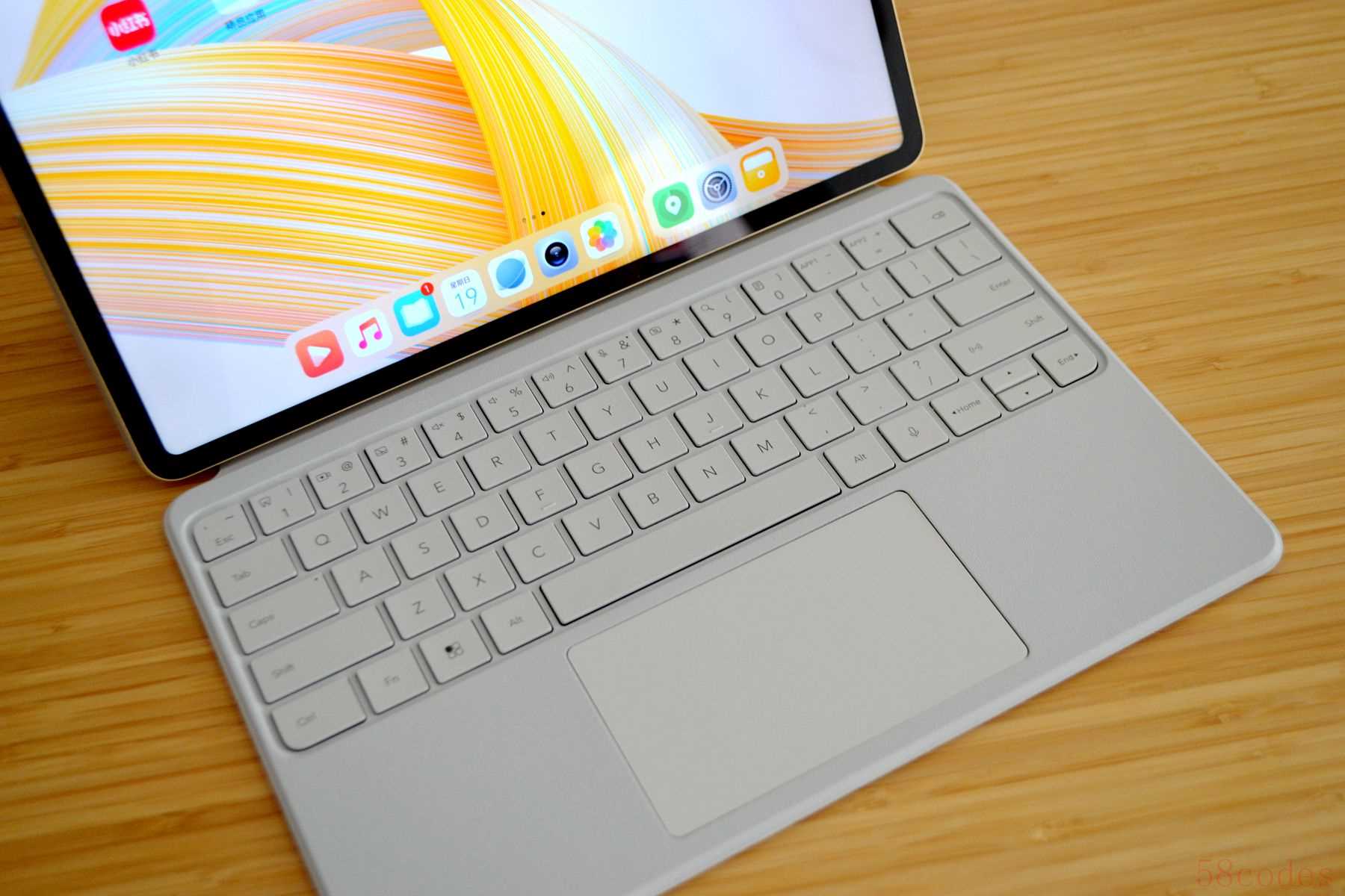 键盘的键程为 1.6mm,上手试用,按键回弹有力,不输荣耀的笔记本的键盘。而且,荣耀专门优化了键盘的多种组合键,比如ESC快捷键可以在荣耀平板上实现快速返回功能,还有更多的组合键,比如Fn+1快速截屏、Fn+2快速录屏、Fn+9全局搜索、Fn+0打开笔记以及Fn++/-激活自定义APP等等,加上大尺寸的全域按压触控板,熟悉了以后,真的可以让平板作为一台非常便携的生产力工具来使用。