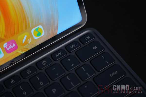 键盘和手写笔作为荣耀MagicPad的办公外接设备,也为MagicPad的办公体验提供了最佳助力。蓝牙键盘支持大角度任意调节,六排按键具备PC级键程与手感,日常打字是比较舒服的。而且,键盘上也设置了快捷键,比如截屏、录屏、打印、关闭触控板、静音、关闭麦克风、关闭摄像头等,既考虑到了实用性也考虑到了用户隐私。用户在键盘上也可以设置两个常用APP,一键即可切换,免去了需要通过屏幕频繁切换的繁琐。