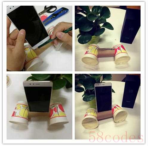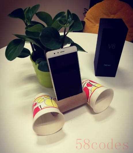 通过这样的简单步骤,利用家里用过的卷纸纸筒和一次性纸杯做了简单的DIY手机扩音支架,不但增加了荣耀V8立体声外放的音乐效果,也起到了支持手机站立的支架作用。将家里变成了小型的音乐剧场。