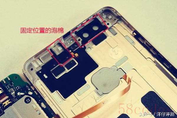 我们可以看到金属后壳的内部设计有防水泡棉,用于固定各种小模块的相对位置,并且在后壳形变时(摔地)起到缓冲的作用