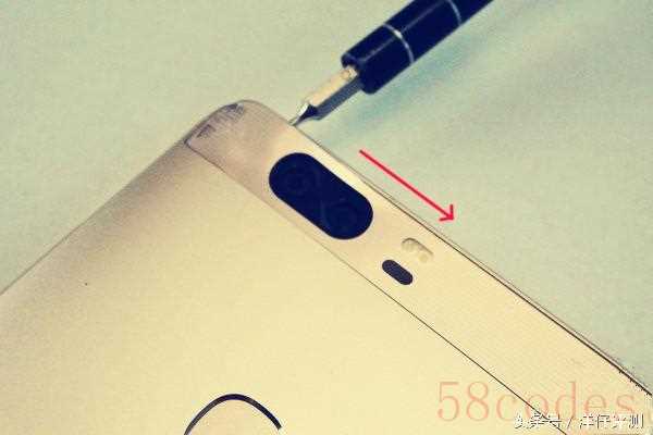 用一字螺丝或刀片撬开覆盖在摄像头表面部位的塑料胶板。注意这个是黏胶黏贴的,撬之前一定要用风枪或者大瓦吹风机加热,不加热很难拆也容易把这块胶板给拆坏,还原的时候不好看了。