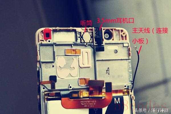我们来看下主板下的屏幕中框,可以看到有听筒,耳机座,当然还有一个射频线