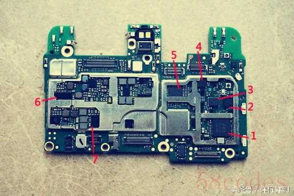 主板正面没有金属屏蔽罩覆盖,但是有扇热硅脂直接与金属中框相贴合,这样做扇热会比加个屏蔽罩好吗?我们来看下这面都是很么,1.镁光4GB LPDDR4+麒麟950 POP2.东芝64GB eMMC 5.13.ALTEK 6610 ISP4.NXP66T16 NFC5.MAX98925 音频放大器6.VIA CPM1.0A 射频7.德仪 BQ25892 快充IC8.VIA CBP8.2D CDMA基带9.SKY77597-11 射频10.Hi6362 射频