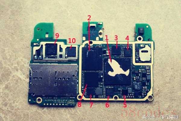 接下来我们看看主板,主板背面面一些部件被非焊接屏蔽罩覆盖,拆掉屏蔽罩我们可以进一步看到里面的东西。1. CDMA3G/2G 射频2.SKY77765-1