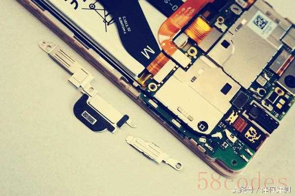 来个指纹排线特写,我们可以看到排线的扣卡位置上方都覆盖有金属支架,起到固定作用,防止松动出现故障。这点做的还不错。