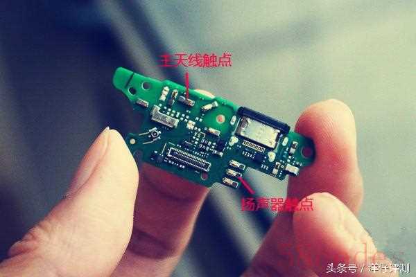 接下来我们看下小板,拆掉螺丝就可以看到扬声器模块,采用金属触点与尾插小板相连接