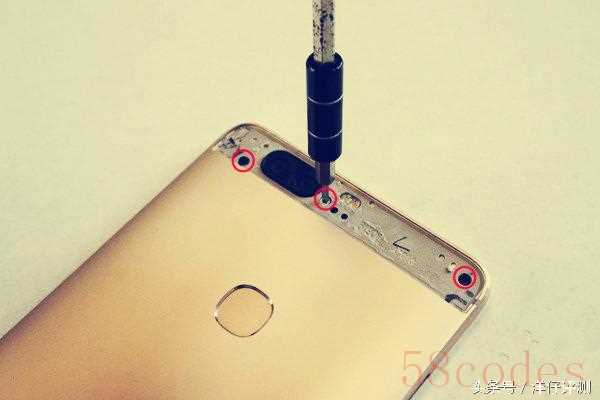 总的来说,V8的拆解难度不大,但在一开始,卸下双摄表面塑料片的步骤容易伤及金属后壳,推荐使用非金属撬棒进行拆卸。