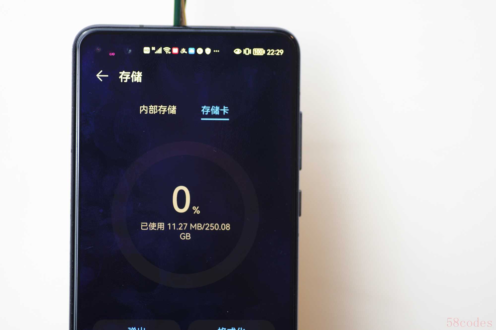 安装比较简单,直接把NM存储卡装入到标有NM卡标识的卡槽中,然后塞入手机就可以使用。显示容量为250.08GB。