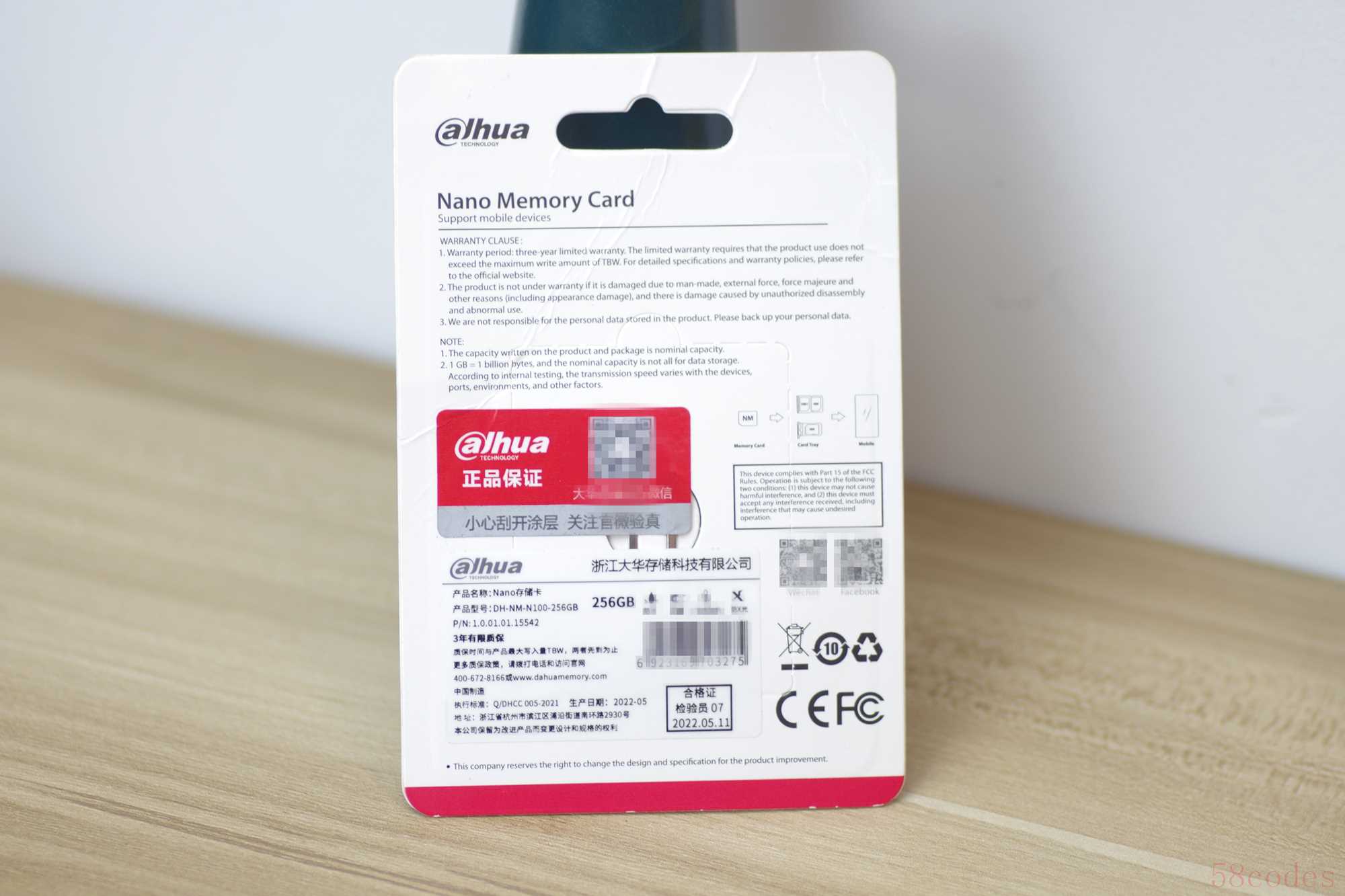 大华NM存储卡采用深红色与白色撞色设计,非常经典耐看。总共有3种规格可以选择,分别是64G,128G,256G等多种容量供大家选择,考虑到以后需要经常存储一些小孩成长视频,所以我选了256G最大容量一步到位,以后想存储多大的视频都不用考虑容量不足的问题。