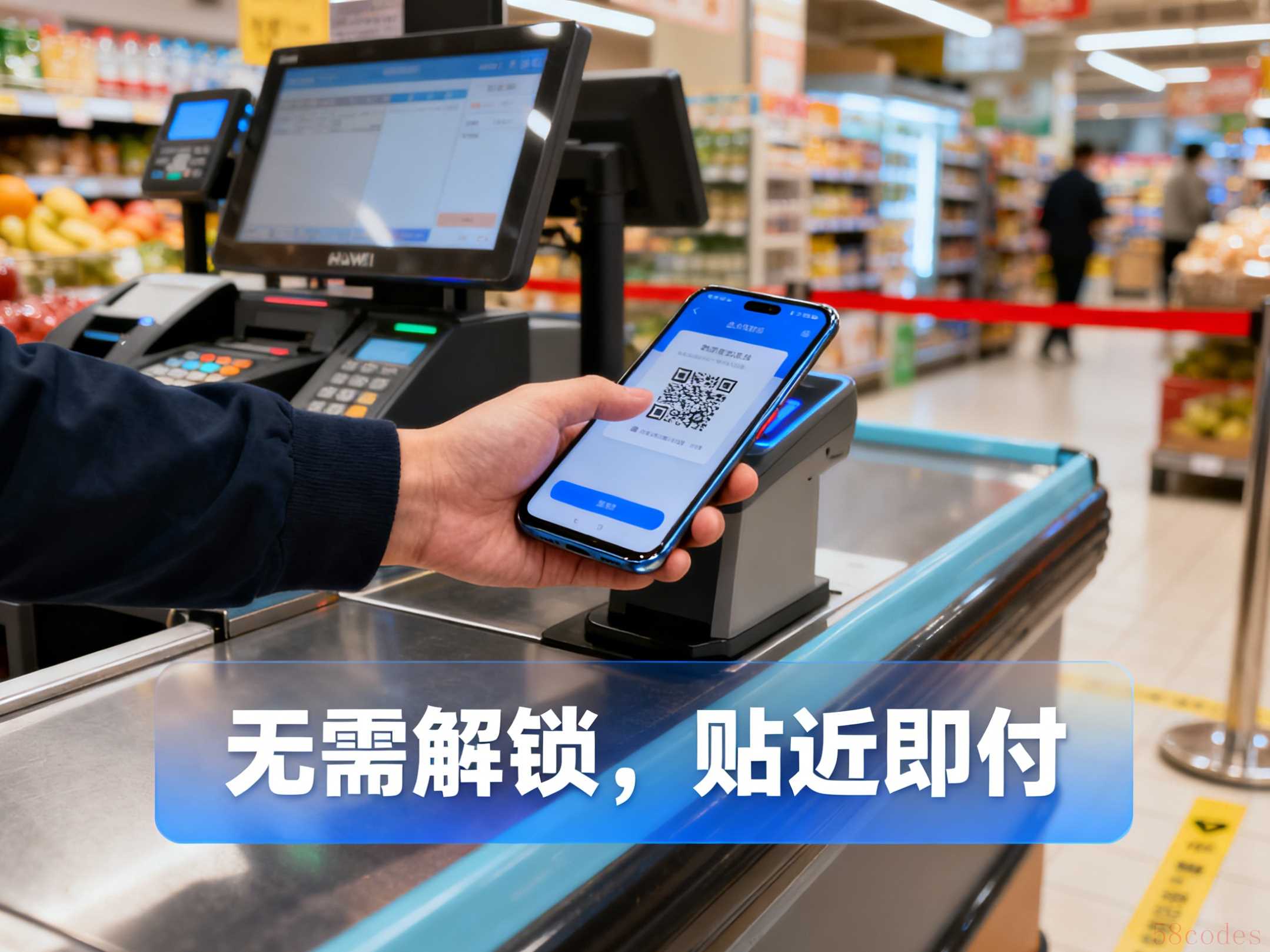 超市结账时翻找微信、支付宝付款码,还要解锁、找APP,后面排队的人催得心慌。开启智感支付,手机贴近收款码就能自动弹出付款界面,全程不用碰屏幕。
