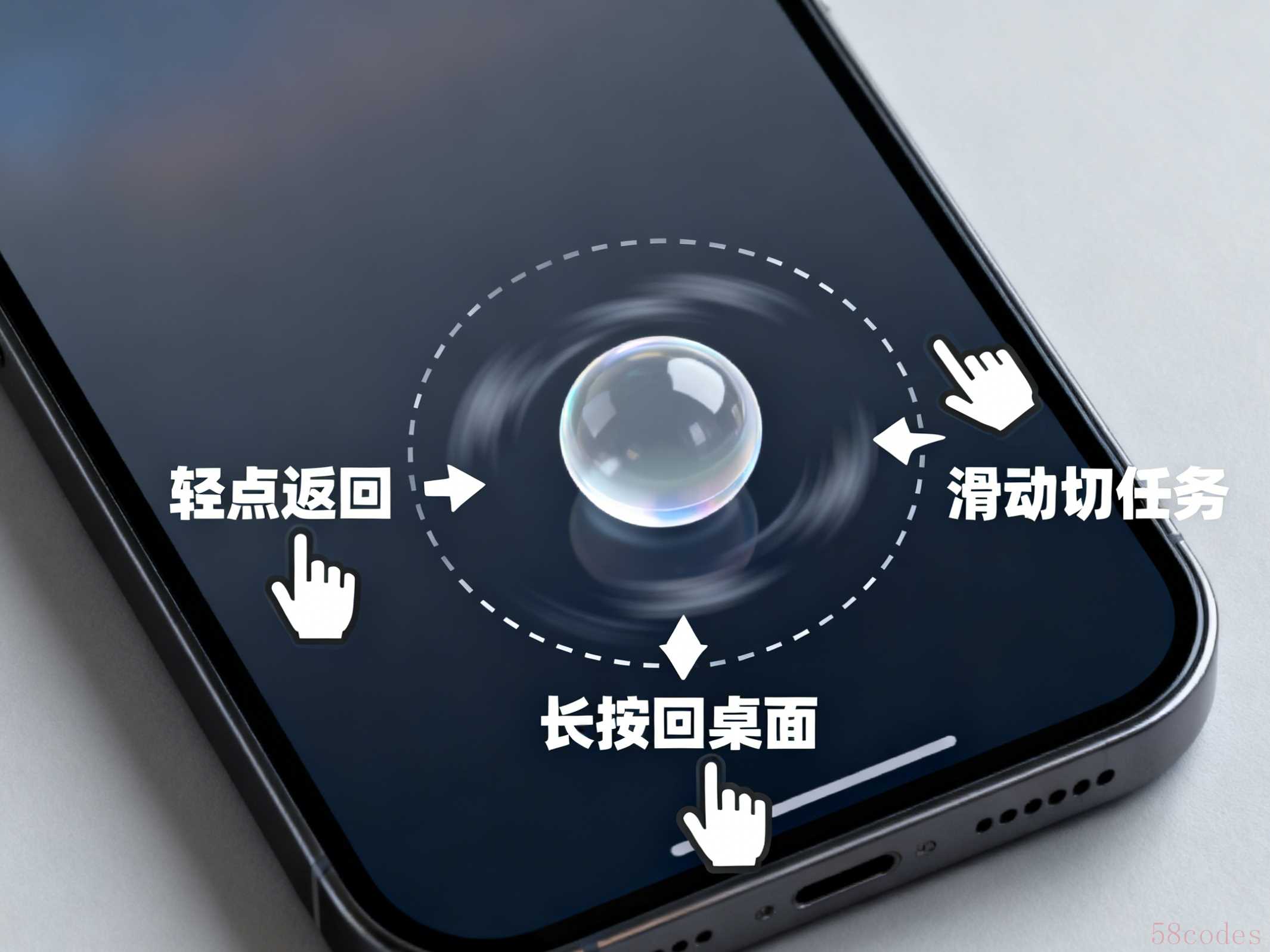 3. 功能说明:轻点返回上一级,长按后松手返回桌面,长按并左右滑动进入多任务管理。