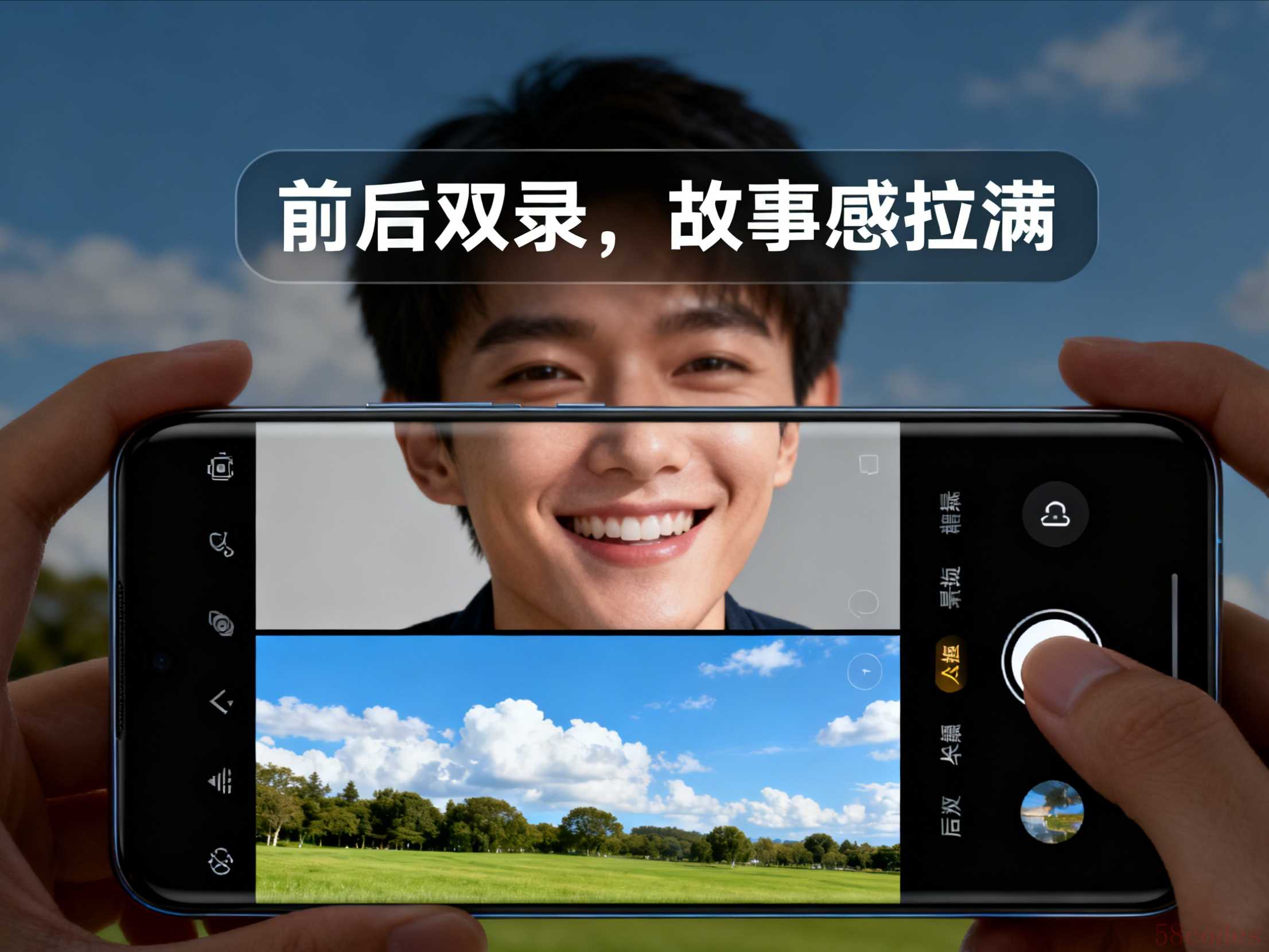 拍vlog时想同时记录自己的表情和眼前的风景,要来回切换镜头?双景拍摄让前后摄像头同时工作,画面分屏显示,故事感直接拉满。