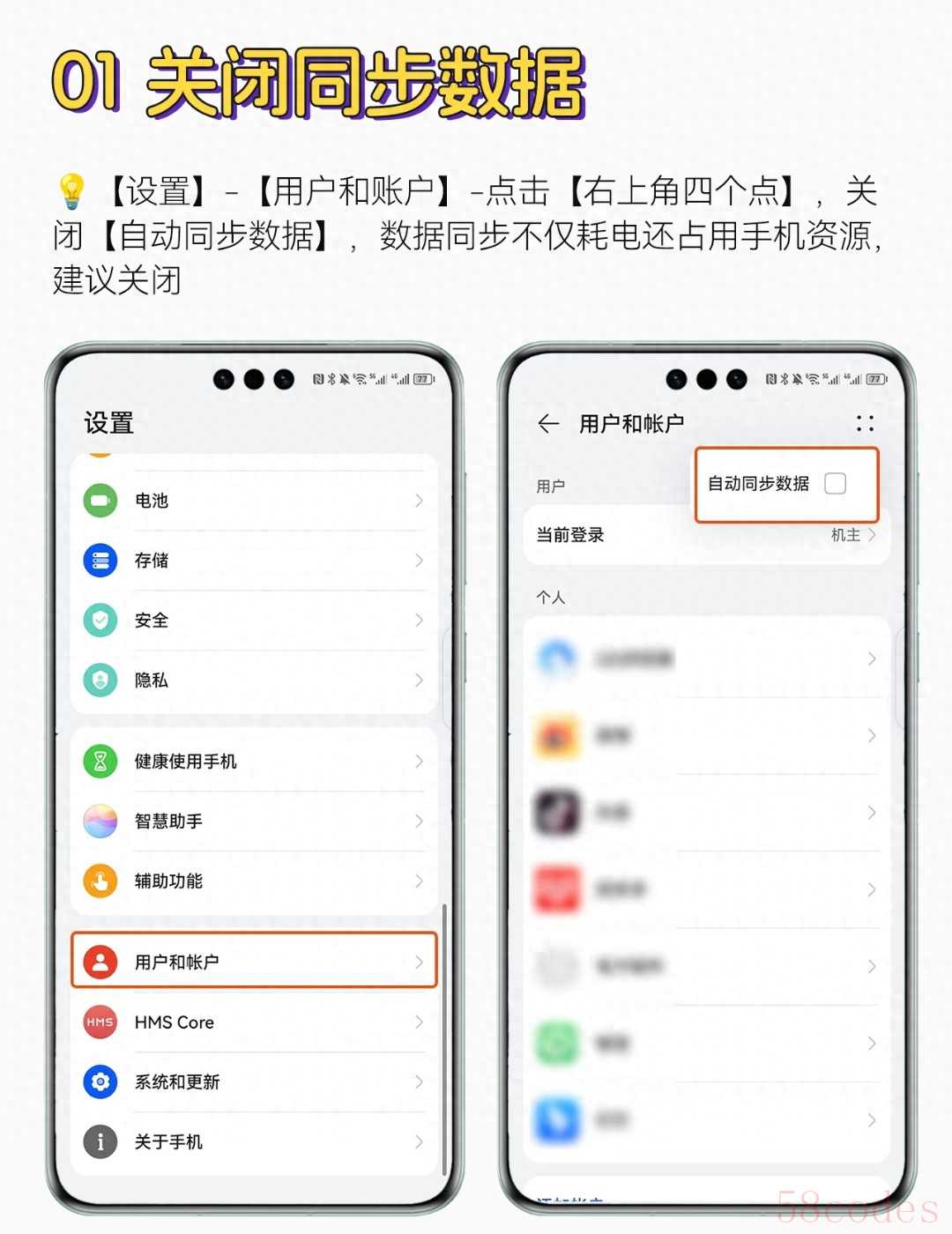 数据同步会在后台一直上传下载你的照片、联系人等数据,不仅耗电快,还占用系统资源,导致手机卡顿。