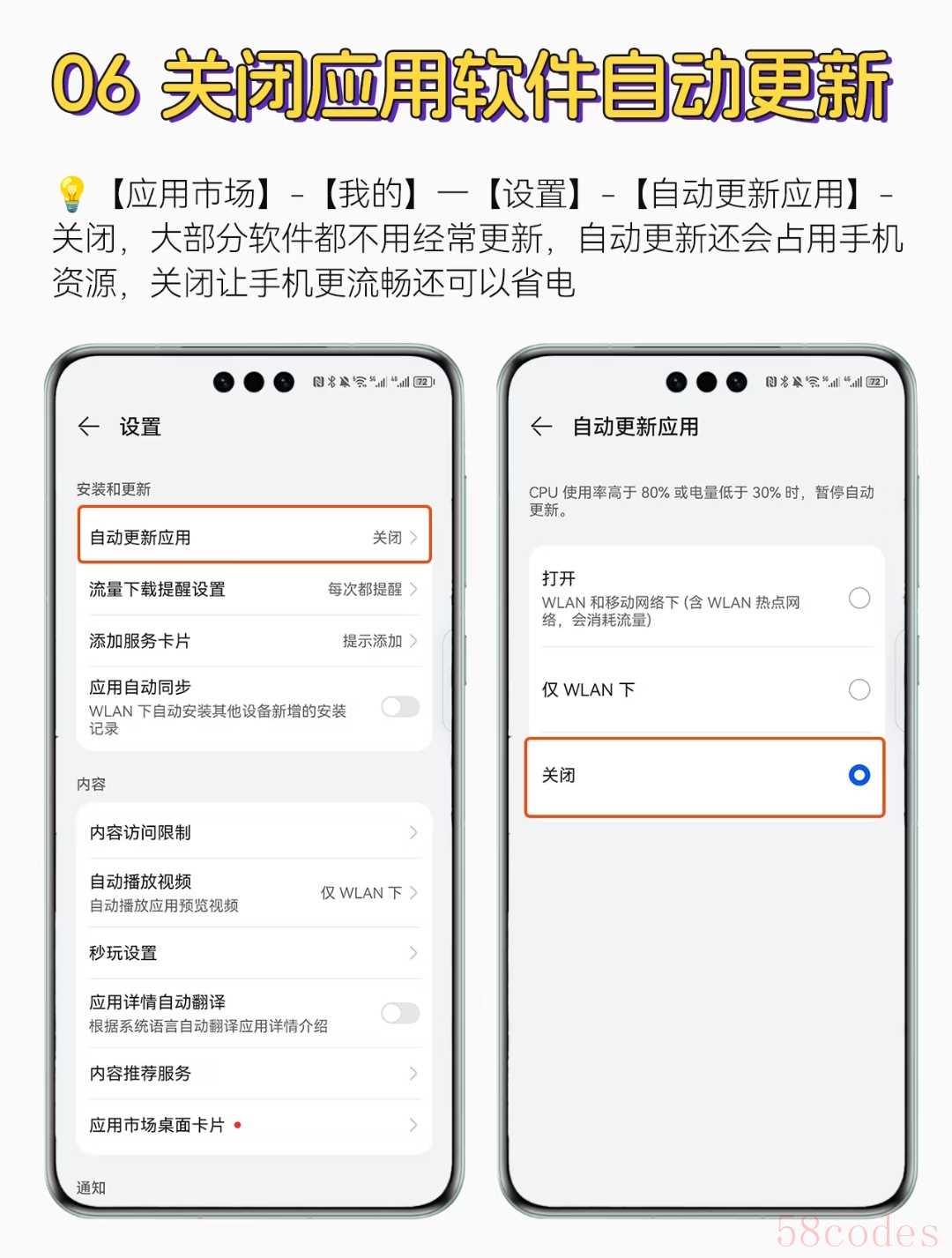 4. "关闭“自动更新应用”功能":在“设置”中找到“应用市场”,关闭“自动更新应用”功能,避免应用在后台自动更新,占用系统资源。