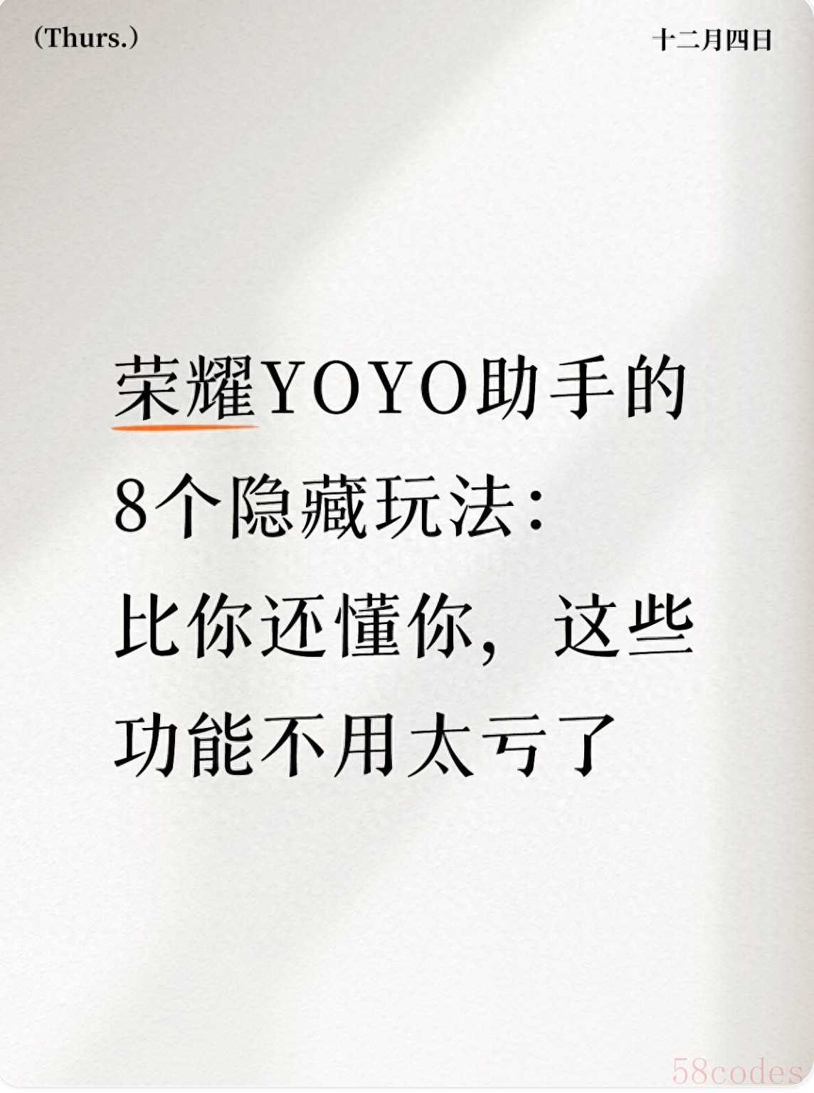 荣耀YOYO助手,作为荣耀手机自带的AI助手,不仅提供了便捷的日常操作,还隐藏了许多实用的功能。下面是8个荣耀YOYO助手的隐藏玩法,让你更全面地了解和使用它: