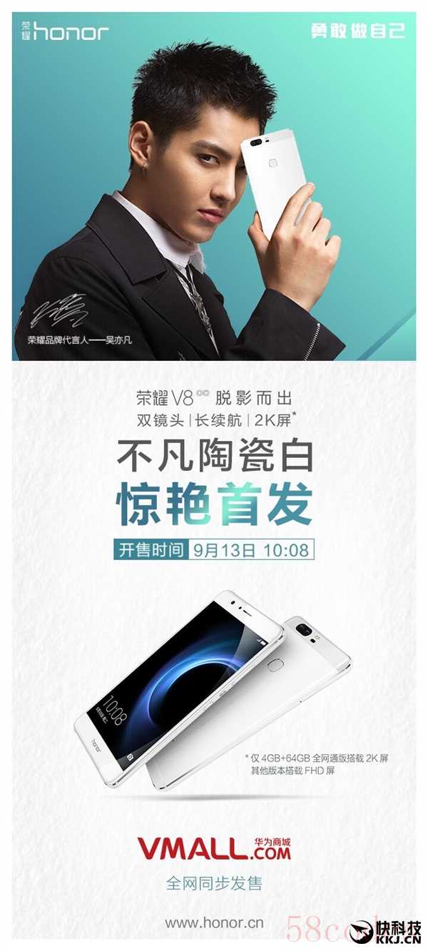 这条信息看起来像是一条关于荣耀(Honor)V8手机的消息,重点包括: