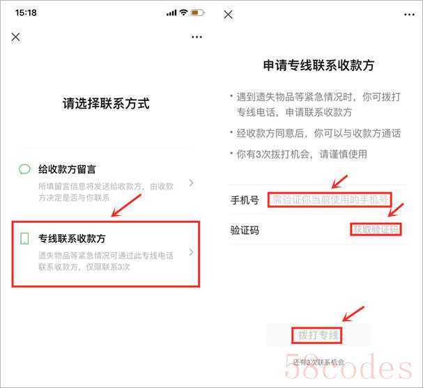 第二个选项是比较紧急情况下可以使用,这个方式仅提供三次,也就是用完这三次权限后,就不能再使用了,所以尽量不要浪费次数,进入后,无需留言,直接填写手机号码,输入获取的验证码,点击拨打专线即可!
