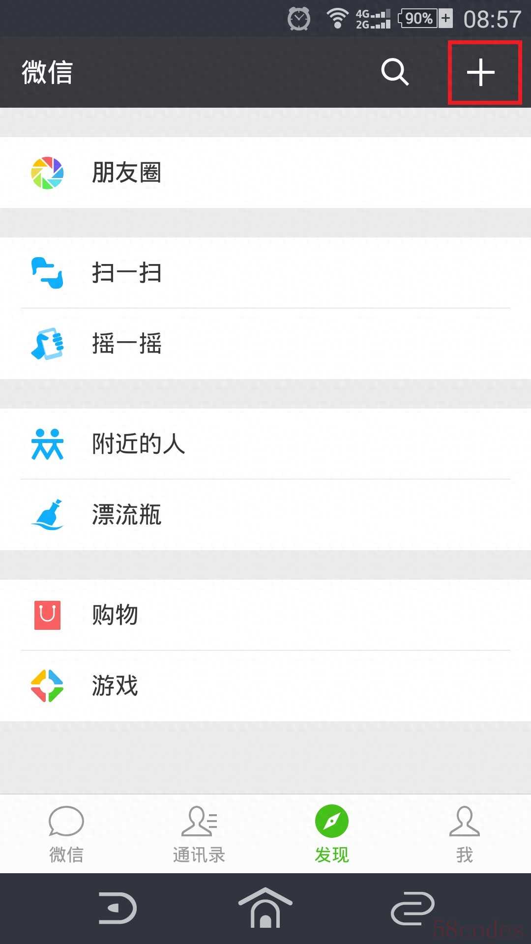 1、首先,打开微信app,点击我的界面,然后点击有上角的加号。