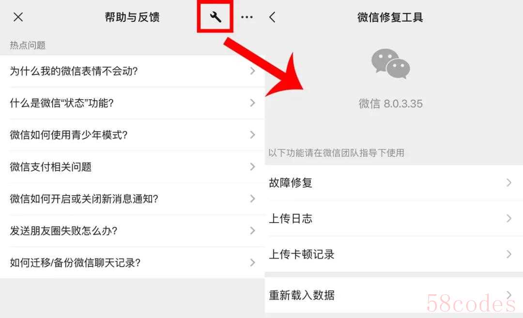 在“我”-“设置”-“帮助与反馈”里,点击扳手小图标,就能看到故障修复的界面。