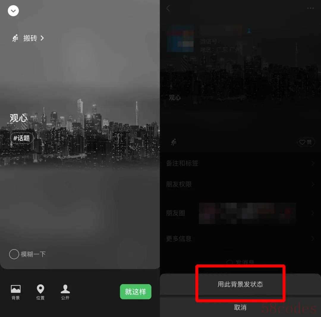 除此之外,这次更新中,状态还支持横版背景图片的设置,你也可以点击使用好友的背景图来发状态。