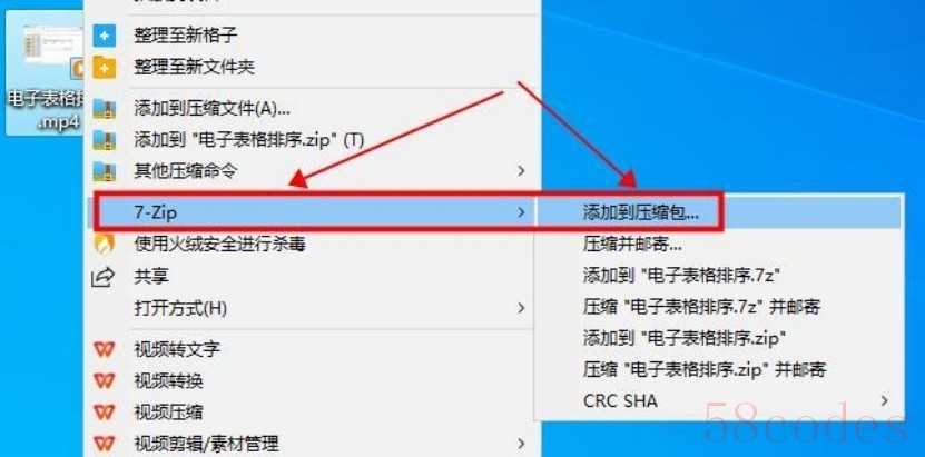 1、右击文件,依次点击【7-zip】-【添加到压缩包】。