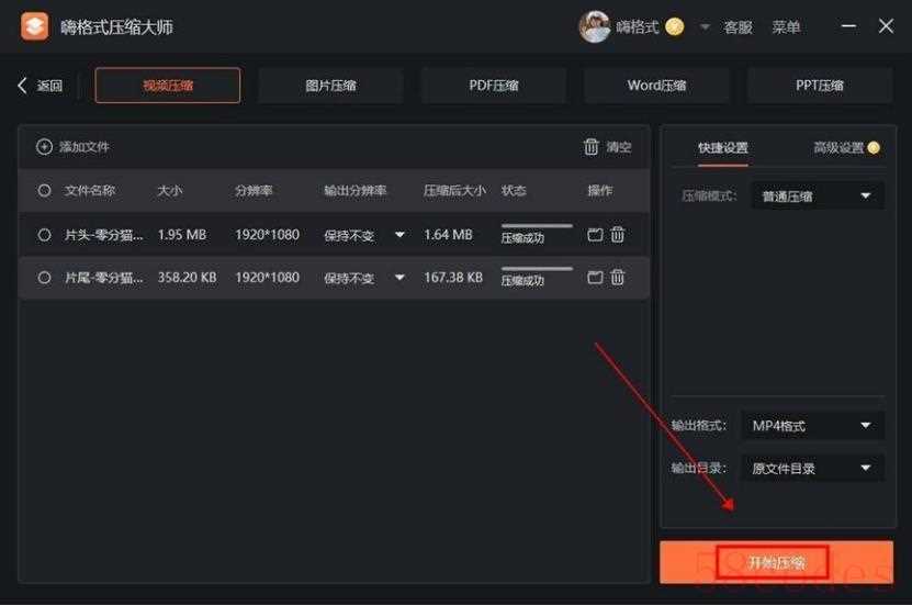 3、最后点击“开始压缩”按钮,稍等片刻就可以了。