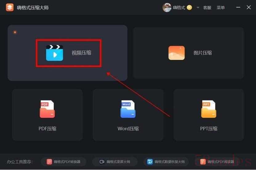 1、打开安装好的软件,以视频文件为操作介绍对象,选择“视频压缩”功能。