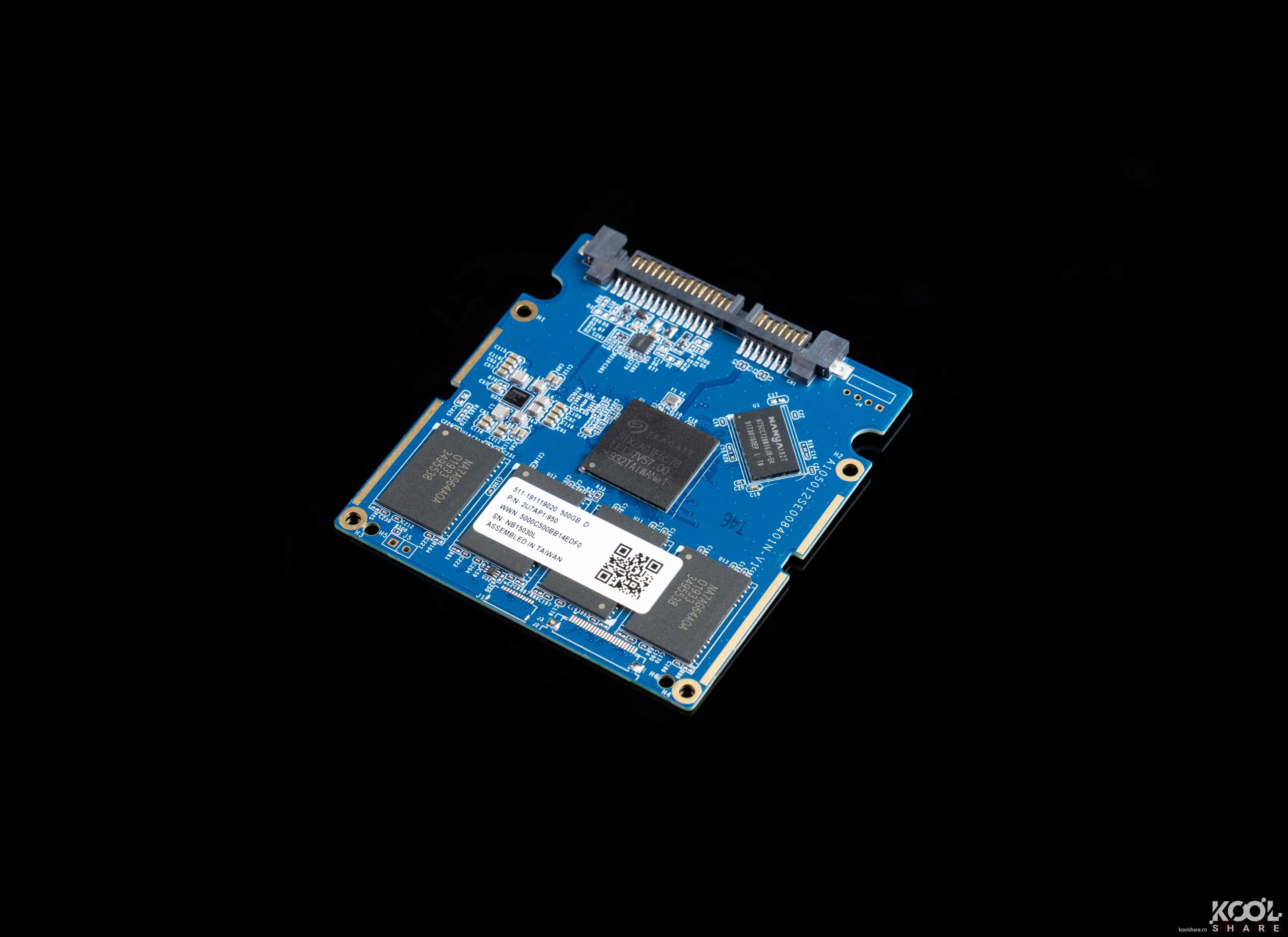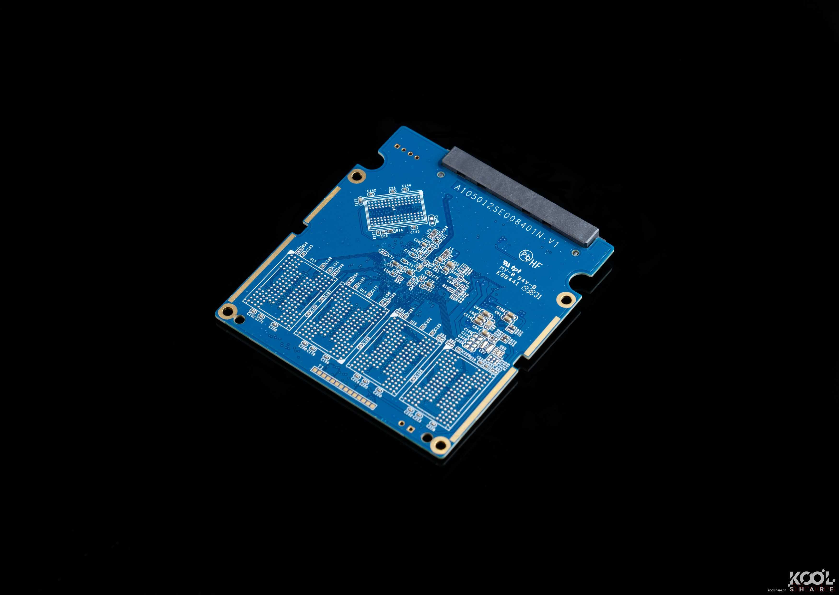 ▲SSD PCB主板正面,蓝色PCB,SATA3接口