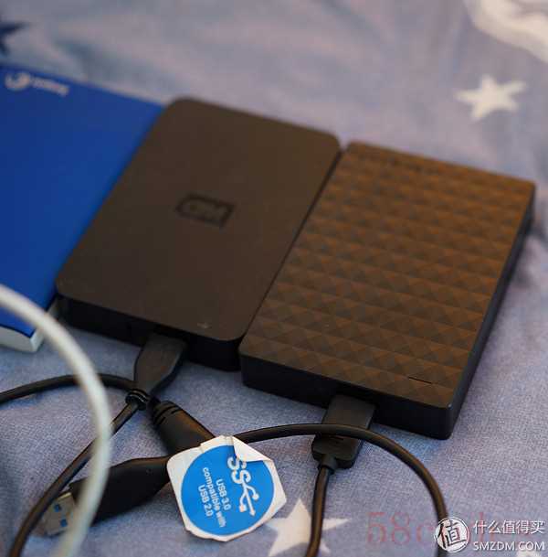 正面来看,明显是西数的最小。另外,希捷的表面那个贴膜没有撕。