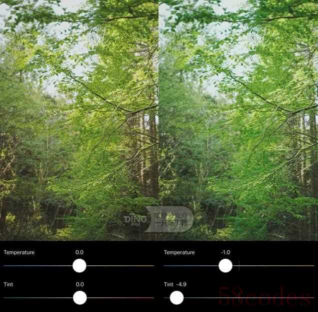 除了色温,有些app还可以调色调,比如 VSCO。色调往右调节,会给画面加入更多粉色,往左则会加入更多绿色。
