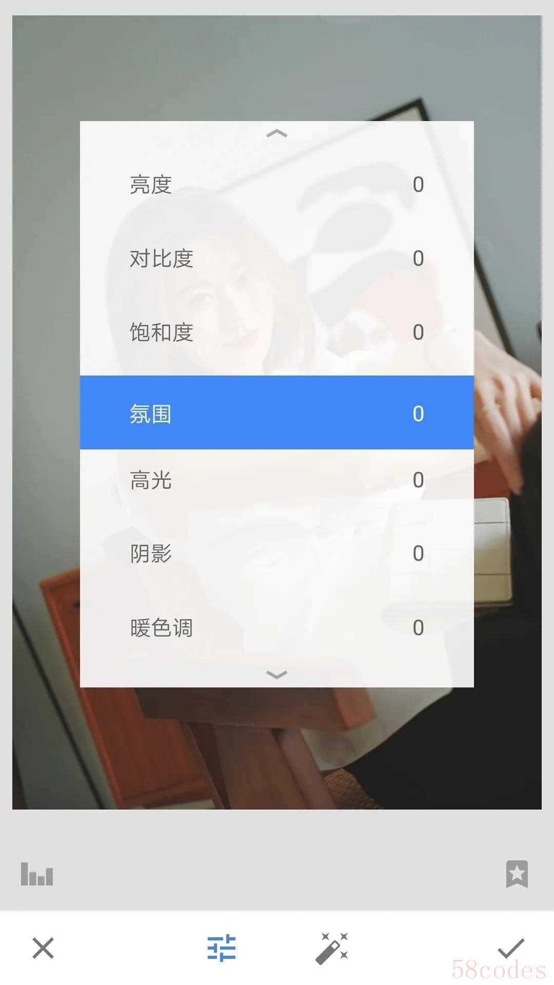 这些基础调色功能很多 app 都有,VSCO 、美图秀秀都可以。