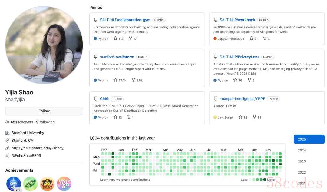 Yijia Shao是斯坦福大学的博士生,师从Diyi Yang教授。她的研究重点是人机协同(Human-AI Collaboration)。她致力于开发能够在任务执行过程中与人类进行有效沟通和协作的AI智能体,并设计新型的人机交互界面。她的工作旨在探索AI如何通过理解人类意图和反馈,更好地辅助人类完成复杂的知识密集型任务。