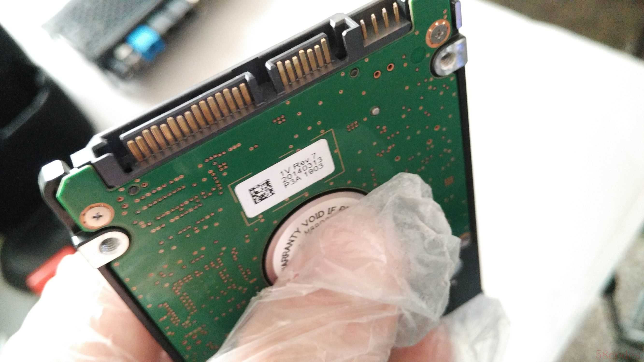 ▲底盖仅有螺丝固定,拆下即可看见硬盘底部,此时可以轻轻地将硬盘取出。