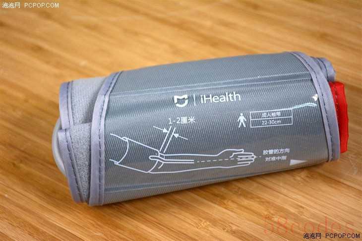 估计我们只有在体检中心才见过血压测试仪吧?使用起来大致只知道将袖带套进胳膊里,这种不专业的认知或许会影响到血压测试结果。为此,米家iHealth血压计在袖带外侧贴有使用提示,将袖带套在距离肘关节2厘米左右的距离,然后收紧到大致可以插入一根手指的程度粘上魔术贴便完成了安装。