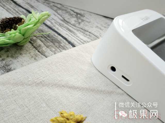 底部有四个微凸的脚垫,双侧有扬声器外放口。