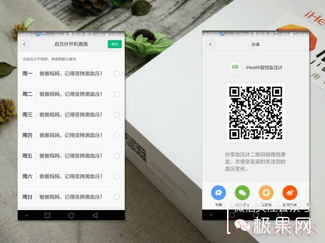 微信端数据其实可以分享给家人朋友,当父母在家测量血压的时候,你的微信端便也会接收到提醒。