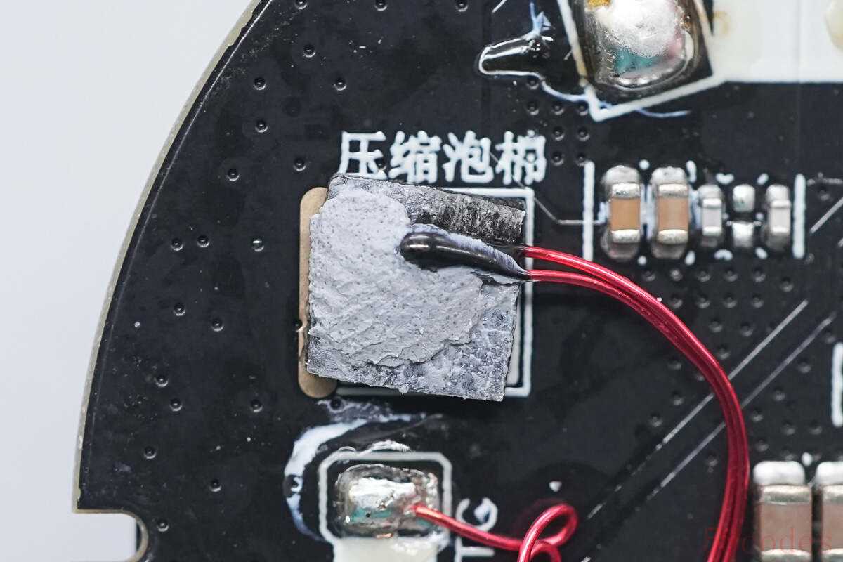 金属壳内侧对应PCB板的边缘区域贴有红色绝缘纸,细节处理到位。