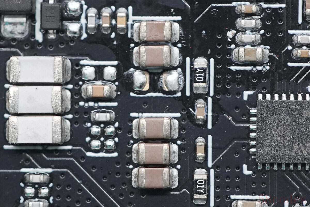 滤波电容来自绿宝石,为SV标准小型化系列叠层导电高分子铝电容器,规格为16V100μF,具有耐纹波电流能力好以及环保(符合无卤、RoHS和REACH规定)等特点,适用于服务器、笔记本电脑、人工智能、无人机、固态硬盘、无线充电器等应用设计。