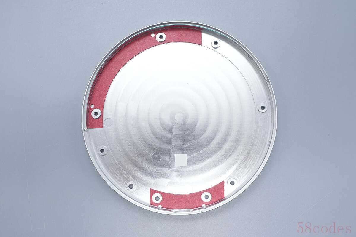 底座内部PCB板为不规则形状设计,剩余区域专门设有两块造型契合的配重铁用于提升产品稳定性。