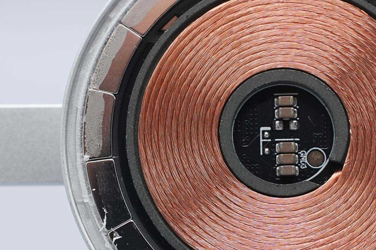 边缘磁铁环打胶水加固,无线充电线圈采用利兹线绕制。
