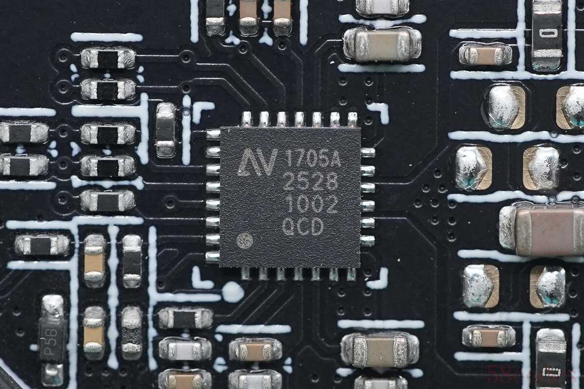 底座无线充电芯片来自伏达半导体,型号NU1705A,集成了适用于宽频率范围的全桥功率级架构和32位MCU内核。该电源系统集成了所有关键功能模块,包括高效功率场效应管、低电磁干扰的FET驱动器、自举电路、4.8V/1.8V集成LDO电源以及无损电流检测技术。