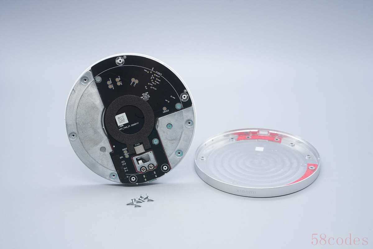 底座底部防滑垫内设有隐藏螺丝,拆掉即可将底座打开。