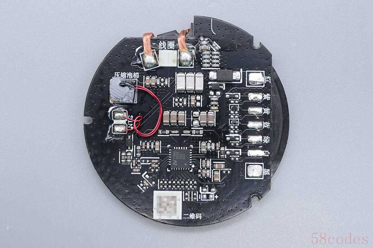 将模块分离,PCB板背面设有无线充电芯片、热敏电阻、NPO谐振电容等器件。