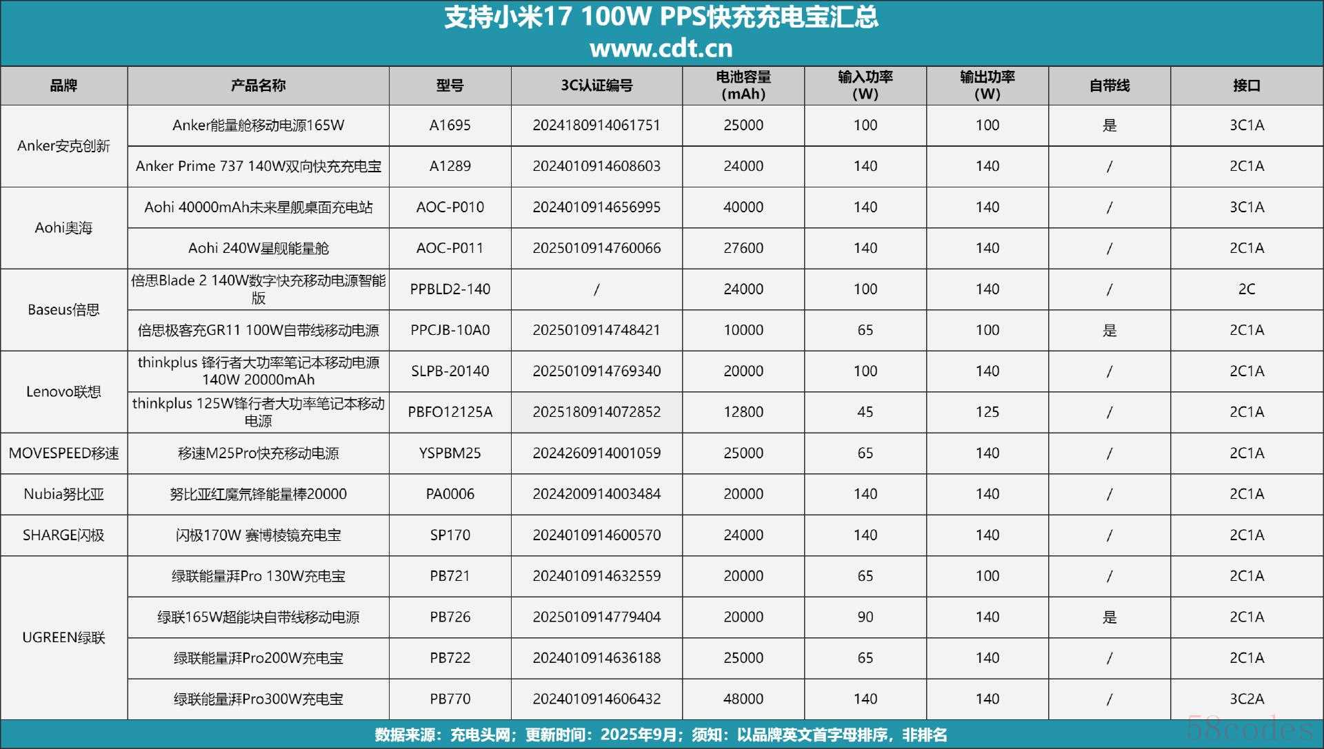 为您汇总支持小米 17 系列并兼容其 100W PPS 快充的充电宝。小米 17 系列支持 100W PPS 快充,需要充电宝同时支持 PPS 协议并且输出功率足够。