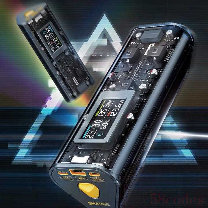 闪极170W 赛博棱镜充电宝采用三角柱状外壳,两端采用铝合金盖板,透明外壳能够观察到内部PCB模块和电池组。充电宝还设有彩色液晶屏幕,能够显示输入输出功率,剩余电量和充放电时间。它配置2*USB-C、USB-A接口,单C口均支持PD3.1 140W输入/输出,户外出行也能为支持PD3.1 140W快充的MacBook Pro笔记本进行快充。