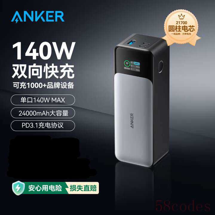 1、率先搭载PD3.1协议芯片充电宝,业内再度领先,Anker 140W高速双向快充移动电源评测
