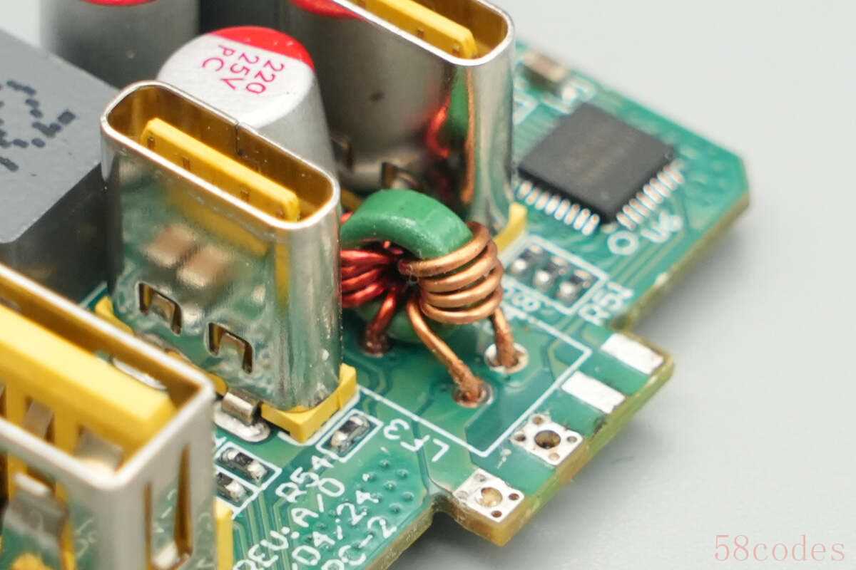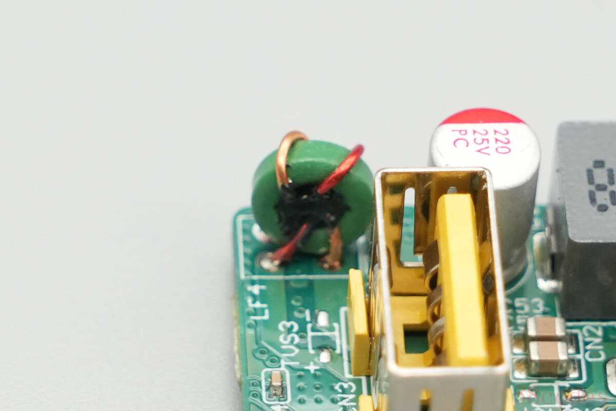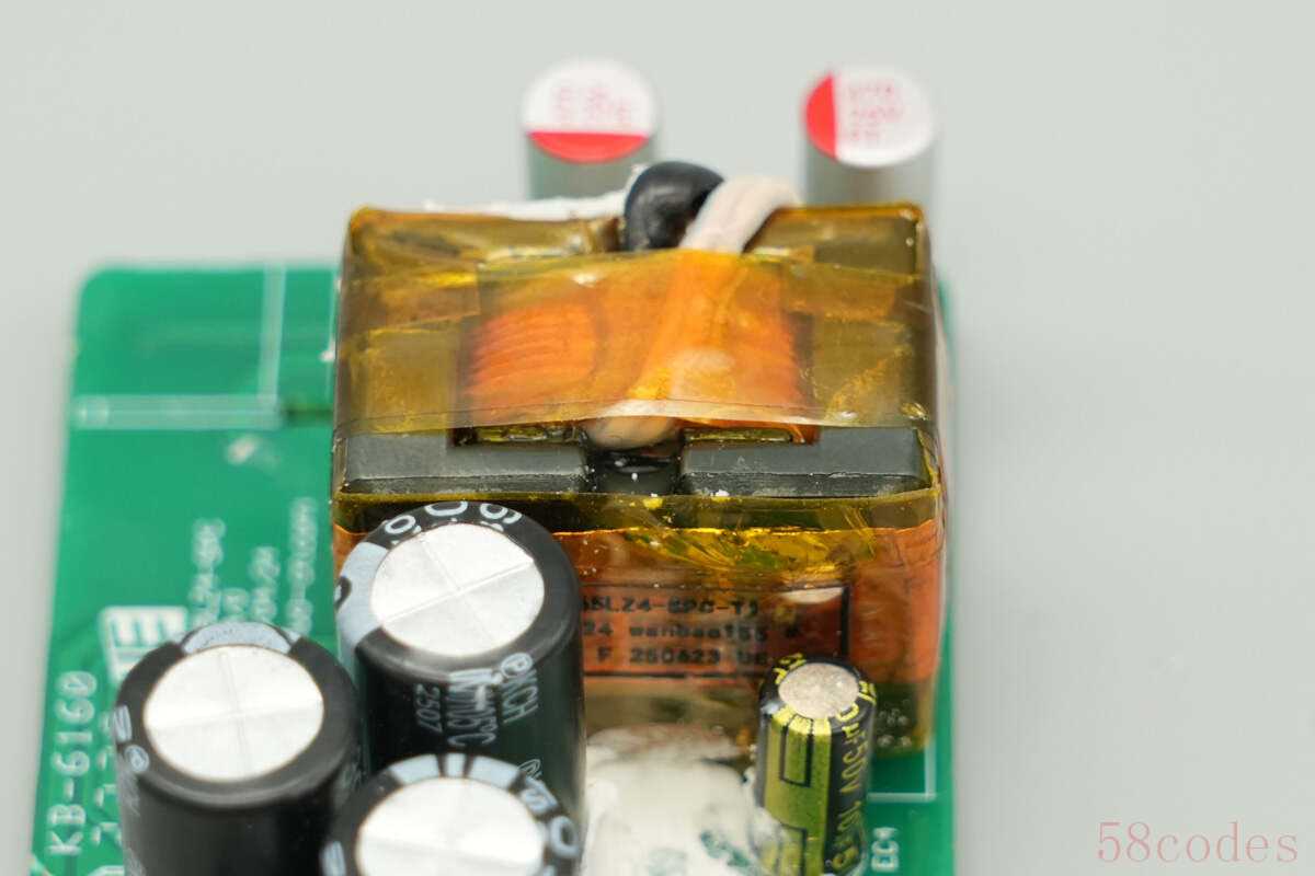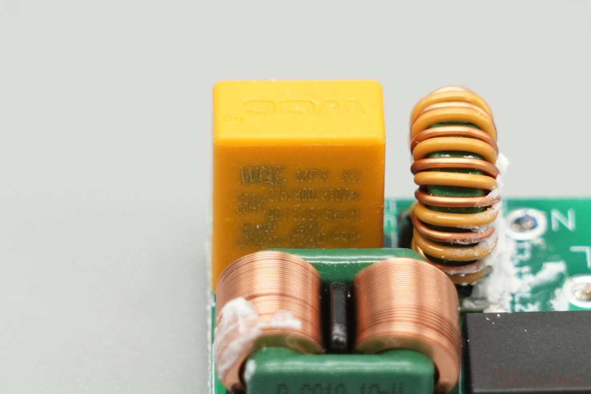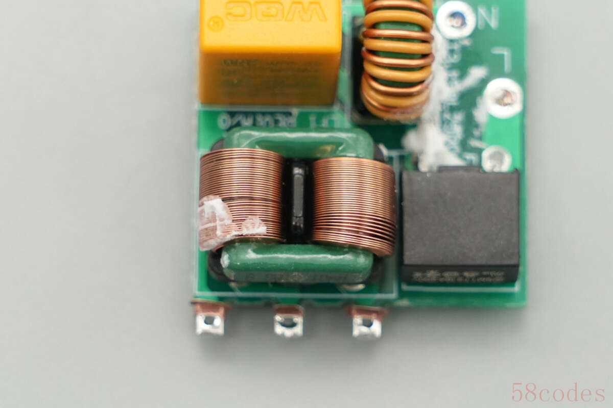 另一颗共模电感扁平铜带绕制,两级设计更好滤除EMI干扰。