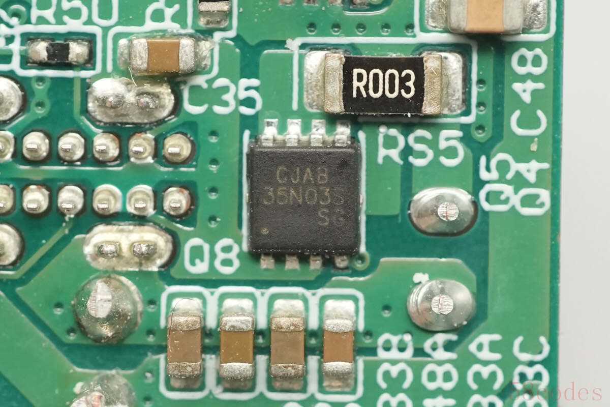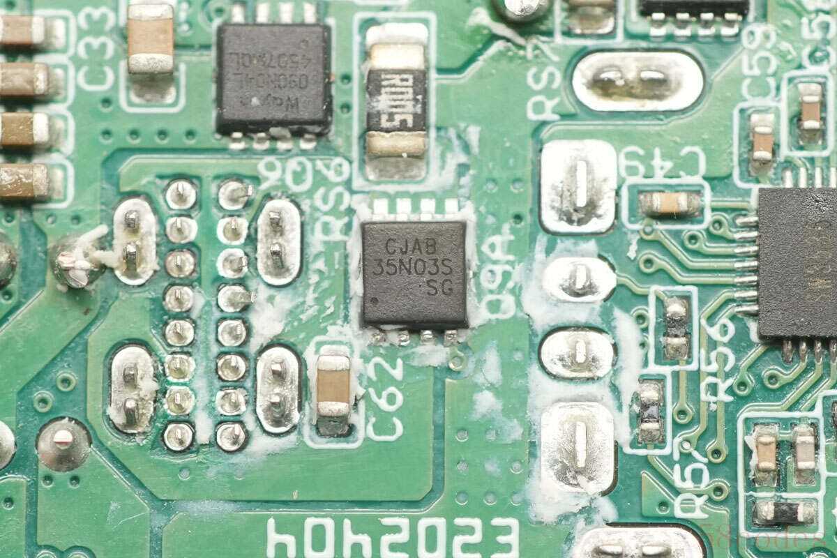 USB-C1口的VBUS开关管来自JSCJ长晶科技,型号CJAB35N03S,NMOS,耐压30V,导阻5.2mΩ,采用PDFNWB3.3*3.3-8L封装。